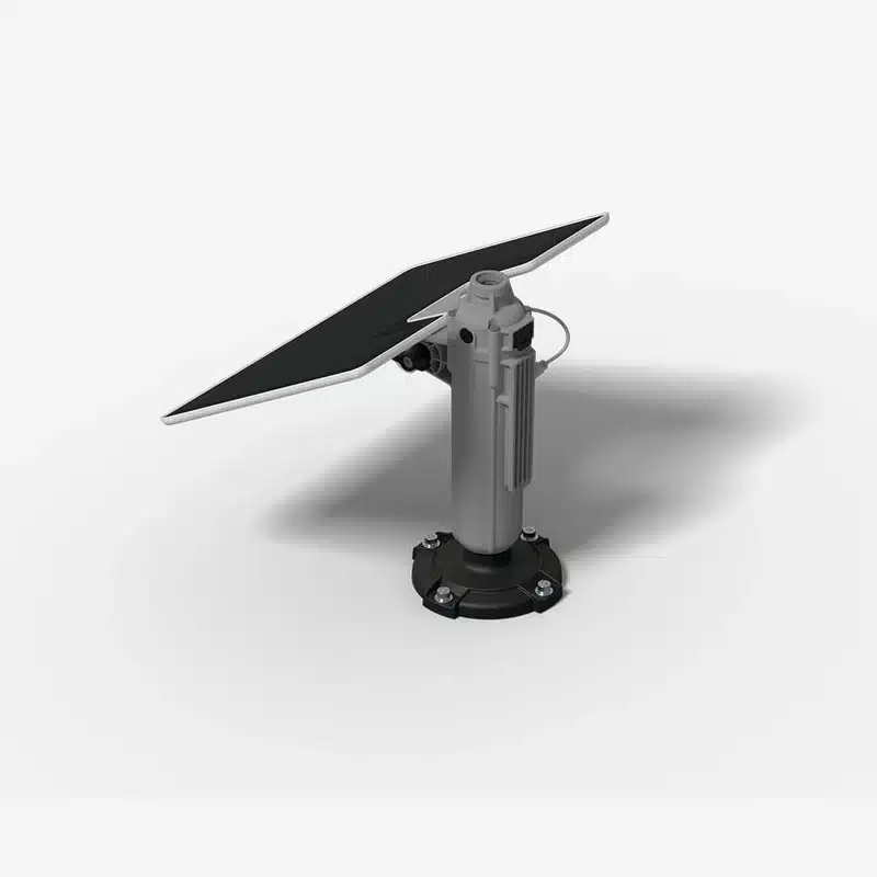 Moduł zasilania energią słoneczną zasilający stację referencyjną RTK pozwala na jej instalację w dowolnym miejscu na zewnątrz.